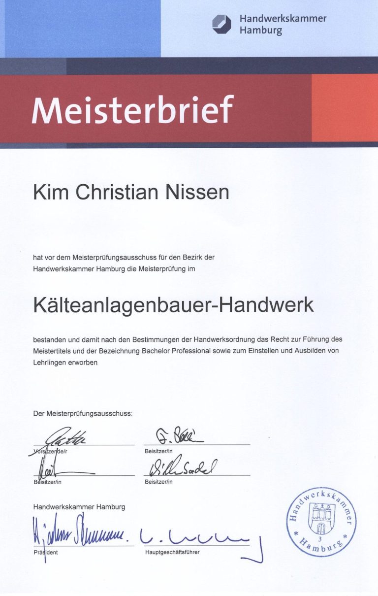 Meisterbrief im Kälteanlagenbauer-Handwerk